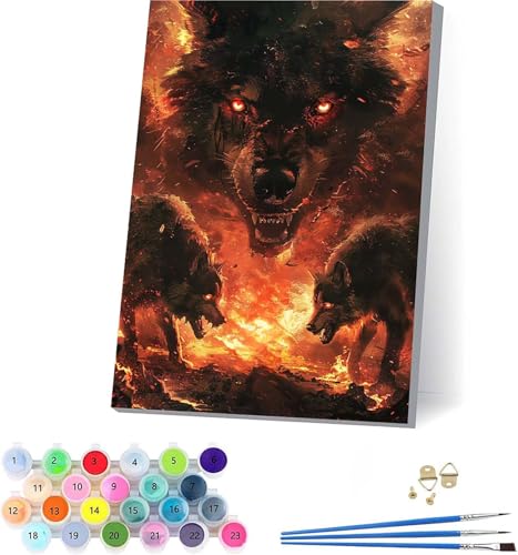 Wolf Malen Nach Zahlen Erwachsene Mit Rahmen, Malen Nach Zahlen Flamme, DIY Set Erwachsene Mit 3 Pinseln und Acrylfarbe, Paint by Numbers für Deko Wohnzimmer, Geschenke für Frauen 100x130cm 3-9347