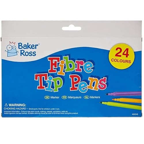 Baker Ross AW345 Großpackung Filzstifte mit feiner Spitze (24 Stück) – unverzichtbar in der Bastelkiste für Kinder zum Malen und Basteln