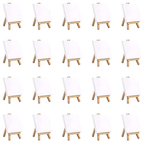 Belle Vous 20er Pack Mini Leinwand mit Holz Bildhalterung Ständer Tisch Staffelei - L10cm x B10cm - Vorgespannte, Grundierte Leere Leinwand - Staffelei Holz Klein für Malen & Zeichnen Öl & Acryl