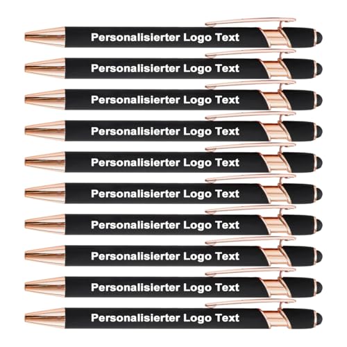 HEYZARDA Kugelschreiber mit Gravur Kugelschreiber Personalisiert mit Namen Text Logo Schwarz 10 Pcs