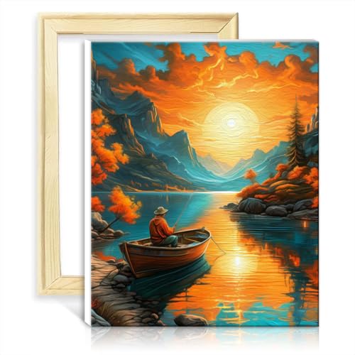 LiHEQING Malen-nach-Zahlen-Set, Angeln auf dem Boot, DIY-Malen nach Zahlen mit Pinseln und Acryl, kreativer Stil, Kunsthandwerk, ohne Rahmen (30 x 40 cm)