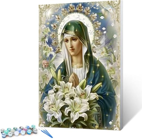 Malen Nach Zahlen Erwachsene, Maria DIY Handgemalt Ölgemälde Kit für Anfänger und Erwachsene Mit Pinseln und Acrylfarbe, Jungfrau 40x50cm (rahmenlos)