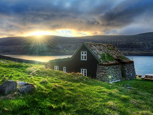 THISIT Malen nach Zahlen Erwachsene - Island,Haus,Steine-16 x 20 Zoll Rahmenlos