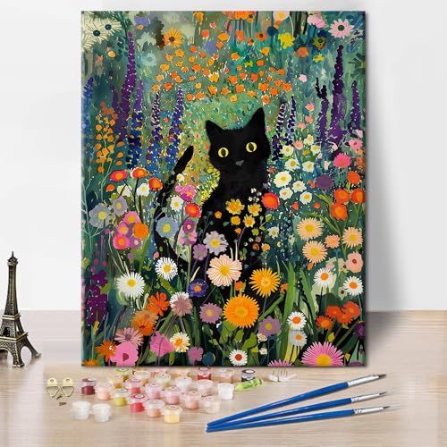 TISHIRON Malen Nach Zahlen Erwachsene Schwarze Katze Malen-Nach-Zahlen Landschaft Malen Nach Zahlen Junior DIY Mit Pinseln Handgemalt Ölgemälde Heimdekoration, 40x50cm