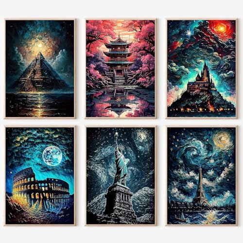 YALKIN 6 Stück Malen Nach Zahlen Erwachsene, Paint by Numbers Malen Nach Zahlen, DIY Landschaft mit Pinseln und Acrylfarben Handgemalt Ölgemälde Leinwand für Home Décor, Ohne Rahmen (20x30cm)