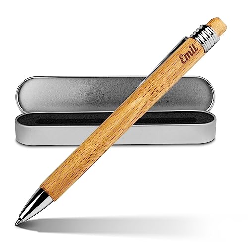 printplanet Kugelschreiber mit Namen Emil - Gravierter Holz-Kugelschreiber inkl. Metall-Geschenkdose