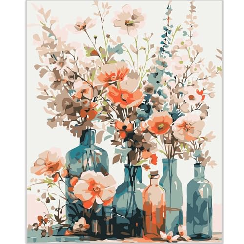 vooiceofco Malen Nach Zahlen Erwachsene Blumen Faltenfreie Leinwand mit 3 Pinseln Acrylpigment DIY Ölgemälde Leinwand Set 40X50CM Rahmenlos