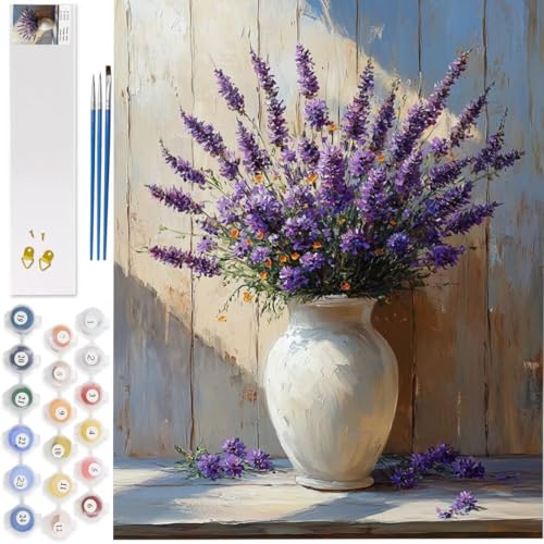 Malen Nach Zahlen Erwachsene Lavendel Paint by Numbers Vase Malen Nach Zahlen Kinder ab 10 DIY Handgemalt Painting by Numbers Adults Bastelset für Schlafzimmer Deko Aesthetic 20x30cm Ohne Rahmen,1642