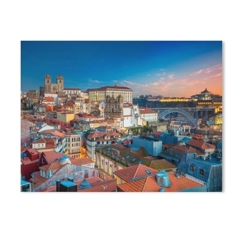 BEAYODKP Abendliche Luis I Brücke, Porto, Portugal,Malen Nach Zahlen-Ölgemälde Geschenk Für Erwachsene Kinder Malen Nach Zahlen Kits Home Haus Dekor(40x50cm) 15.7x19.6 Zoll-697