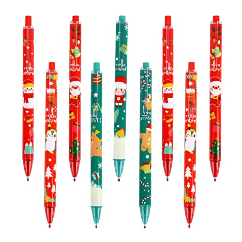 【6 Stile Muster Weihnachtskugelschreiber】: Weihnachtsmann, Schneemann, Lebkuchenmann, Elch, Pinguin usw. 6 verschiedene Muster, es gibt zwei Farben von Rot und Grün, die Packung enthält 24 Stifte, das Farbmuster ist zufällig, fügen Sie ein Sinn für Mysterium und Weihnachtsdekoration. 【Weihnachtsstifte】: Diese Kugelschreiber sind mit weihnachtlichen Dekorationen wie Schneemann, Weihnachtsmann und Elch usw. bedruckt. Niedliche und festliche Designs können die Weihnachtsstimmung verbessern. 【Qualitätsmaterial】: Unsere Stifte sind aus hochwertigem Material hergestellt, ungiftig und langlebig genug, um während dieser Ferienzeit eine lange Lebensdauer zu bieten, einfach zu schreiben und sicher als Spielzeug zu spielen. 【Einfach zu bedienen】: Drücken Sie einfach auf die Oberseite des Weihnachtsstifts, einfach mit schwarzer Tinte, bequem zu bedienen und reibungslos zu schreiben, um Ihnen ein gutes Schreiberlebnis zu bieten. 【Beste Geschenkgeschenke】: Der Weihnachtsstift ist ein Muss für jede Geschenkbox, schönes Design und leuchtende Farben können Kinder sehr anziehen, Sie können sie an Weihnachten oder Geburtstag an Ihre Klassenkameraden, Freunde, Familie oder andere wichtige Personen senden
