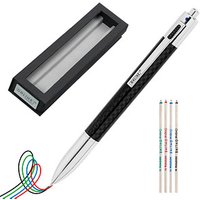 4-Farben-Kugelschreiber-SetMit diesem sowohl praktischen als auch besonders edlen Kugelschreiber von ONLINE® sind Sie für alle Fälle gerüstet. Sie wählen spontan, jederzeit und ganz nach Ihrem Einsatzzweck, ob Sie gerne blau, rot, grün oder schwarz schreiben möchten.Hohe Qualität trifft auf edles DesignDieses 4-Farben-Kugelschreiber-Set kommt im edlen Carbon-Design. Es begeistert nicht nur durch seine exzellente Verarbeitung, sondern auch durch die reibungslose Druckmechanik und den stabilen Metallclip mit Rückholmechanik. Außerdem befindet sich der Stift in einem eleganten Geschenketui – dieser Kugelschreiber überzeugt auf ganzer Linie!In 4 nachfüllbaren FarbenMit diesem 4-Farben-Kugelschreiber-Set profitieren Sie gleich von mehreren Vorteilen. Schreiben Sie ganz nach Bedarf in Ihrer gewünschten Farbe, Sie können jederzeit zwischen blau, rot, grün und schwarz wählen. Egal, ob Sie gerade dabei sind zu korrigieren, zu notieren oder eine spontane Eingebung festhalten wollen, das alles gelingt optimal mit dem Multifunktionsstift aus Metall. Die internationale D1 Kugelschreibermine mit der Strichstärke M ist nachfüllbar und kann somit problemlos ausgetauscht werden.Dank des eleganten Geschenketuis ist das 4-Farben-Kugelschreiber-Set eine tolle Geschenkidee. Ihre Kollegen, Freunde oder Familienmitglieder werden ganz sicher begeistert sein!Bestellen Sie jetzt das 4-Farben-Kugelschreiber-Set hier im Online-Shop und freuen Sie sich auf pures Schreibvergnügen für jeden Tag! Sie erhalten 4 Ersatzminen (schwarz, blau, rot, grün) und das Geschenketui in der Lieferung inklusive.