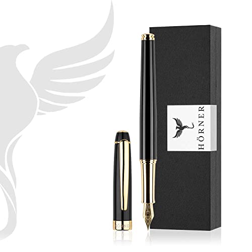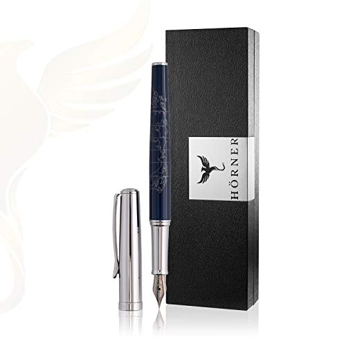 Hörner Levio - Hochwertiger Füllfederhalter mit Gravur I Tinte in Schwarz I Premium Geschenkbox I Luxus Design I Edel Feder „Made in Germany“ I Attraktiver Stift für Herren und Damen I Aus Metall