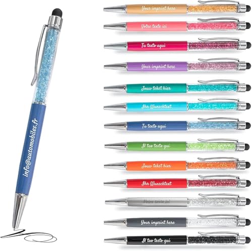 Jolis Papiers Personalisierter metallischer 2-in-1-Kugelschreiber mit Ihrem hochwertigen personalisierten Text mit integrierten Kristallen (12 Farben verfügbar) (Regenbogen, 12)