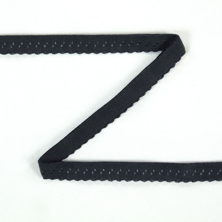Elastisches Spitzen-Einfassband mit Stickerei schwarz 12 mm
