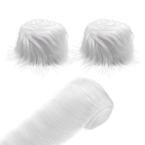 Furry Faux Craft Plüschstoff Kunstleder, 180x5cm Kunstfell Zum Basteln Weiss, Faux Fur Langhaarplüsch fur Nähen, Dekorieren, Dekoband Plüsch Trim Stoffrolle, DIY - Weiß