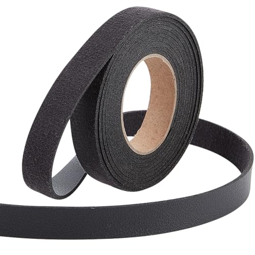 GORGECRAFT 12.5 mm X 2 m Streifen Aus Genarbtem Kunstleder Schwarzes Lederband 0.07"/1.7 mm Dick Flache Lederschnur Fäden Seil Für Heimwerker Basteln Gitarrengürtel Armbänder Schmuckherstellung