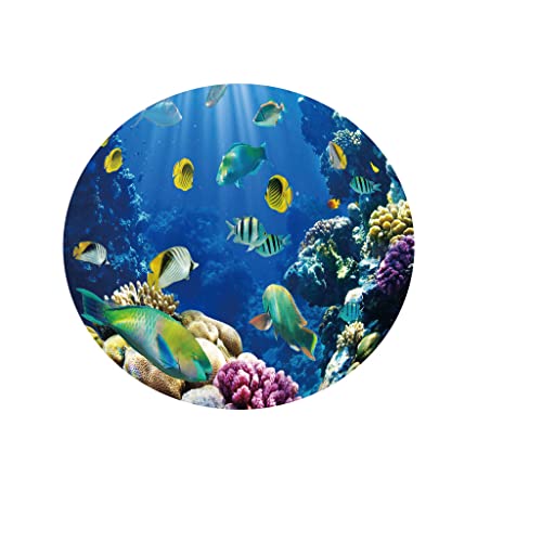Chickw1 Tischdecke Runde Wasserdicht Abwaschbar 3D Blauer Ozeandruck Tischschoner Elastische Kante, Tischtuch aus Polyester für Küche, Esszimmer, Garten, Balkon, Camping (Meeresfrüchte,130cm)