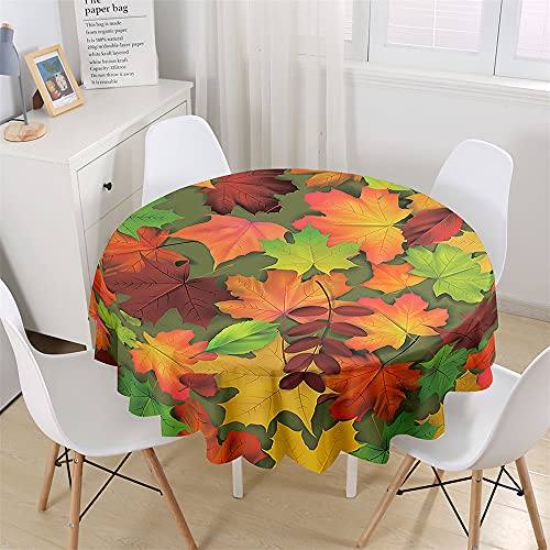 Chickw1 Wasserdicht Runde Tischdecke 3D Herbst Blätter Muster Bedruckte Tischdecke, Abwaschbar Tischtuch, Tischdekoration Benutzt für Küche, Esszimmer, Garten (Bergahorn,100cm)