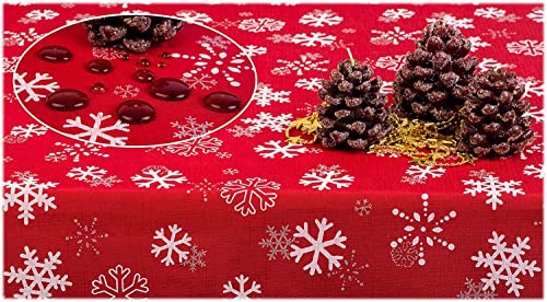 GOLDMAR Weihnachtstischdecke Fleckenresistente Schmutzabweisend Zweiseitig Tischdecke Weihnachten Advent - Polyester Rot Grau Elegante Weihnachtstisch Deko (110x140 cm, Rot)