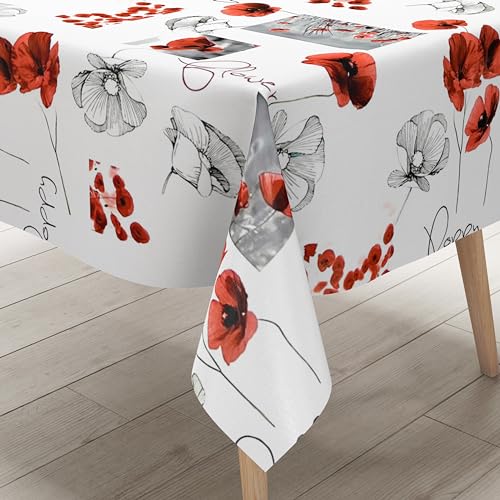KEVKUS Wachstuch Tischdecke DR40 Mohn Poppy Blüten wählbar in eckig, rund und oval - Größe eckig 140x240cm Schnittkante