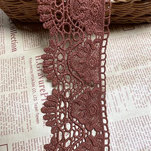 Spitzenbesatz für Stickerei, elastisch, 8 cm breit, für Kleidung / Accessoires, für Vorhänge (5 Yards in einer Packung) (Bordeaux)