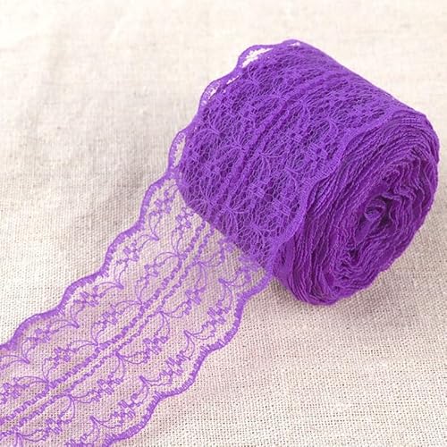 2 Rollen Spitzenbordüre Spitzenband - 10m 4.5CM Breite Spitzenband Vintage Spitzen-Blumen Zierband Spitzenborte Häkelspitze Dekoband für DIY Nähen Handwerk Deko Scrapbooking Geschenkbox-dunkellila