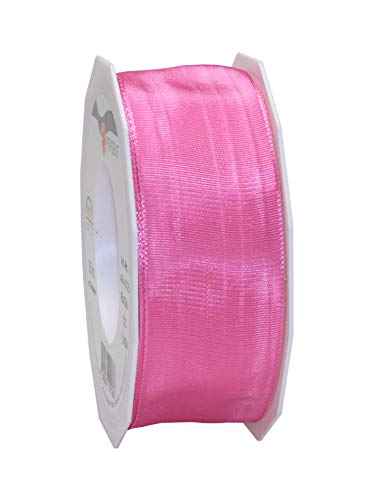 Präsent Lyon Band mit Drahtkante pink, 25 m Dekoband zum Verzieren & Basteln, 40 mm Breite, leicht biegsames Schleifenband, für Festliche Dekos zu besonderen Anlässen