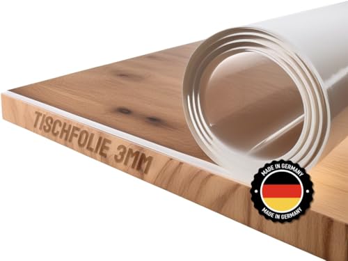 Trente Tischfolie 3mm dick - Tischschutz mit abgeschrägten Kanten - transparente Tischdecke Eckig - Schutztischdecke Größe wählbar - Schutzfolie Abwaschbar - 110x250