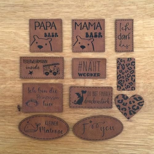 Handmade Label | Labels Kunstleder | witzige Sprüche und Motive | eckig | 39x39 mm | hellbraun (Nur Gucken)