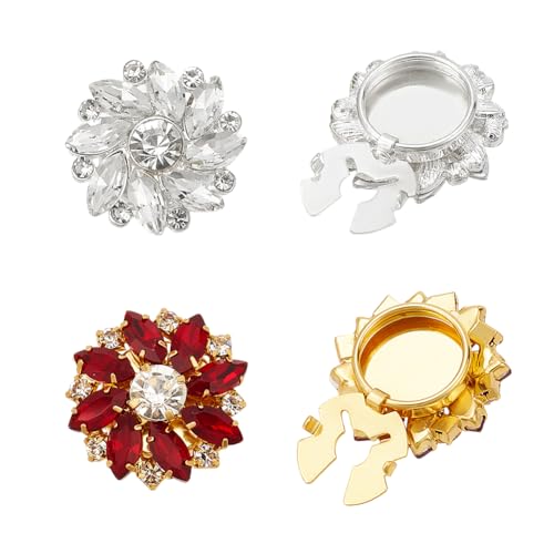 NBEADS 4 Stk. 2 Stile Strass-Knöpfe Abdeckung, Ärmel Knöpfe Blume Abnehmbare Hemdknopf-Clips Buttons Schmuck für Kleid Anzug Smoking Hemd Zubehör, Siam