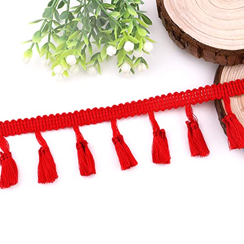 Anevous 10 Yards Quaste Spitzenband 4 cm Quastenborte Band zum Nähen Spitze Borte Quastenband, Fransenborte Quaste Trimmen für DIY Kleidung, Vorhang Tischdecke Dekorieren,Dunkelrot