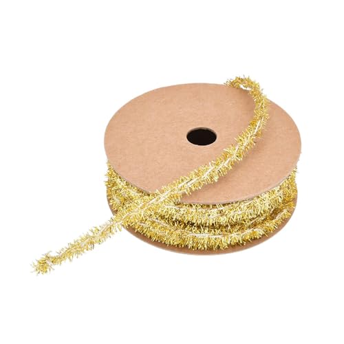 BrightGlow Weihnachten Lametta Girlande Dünn Mini Lametta Girlande Weihnachten Geschenkband Deko Schleifenband Geschenkband Glänzend Dünnes Lametta für Geschenk Weihnachtsbaum 8mm Gold 5 Yard