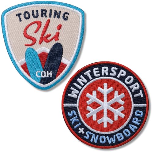 Club of Heroes 2er-Set Wintersport Touring Patches gestickt/Ski Skitour Snowboard Berge Alpen Winter Schneeflocke/Aufnäher Aufbügler Flicken Bügelflicken/zum Aufnähen Aufbügeln auf Jacke Kleidung