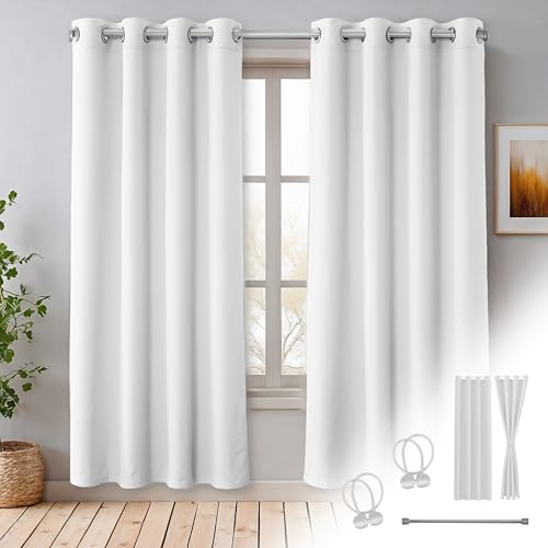 Cozyor Blickdichte Vorhänge Gardinen 2er Set mit Magnet-Raffhalter Thermogardine gegen Kälte, weiß Purity, Gardine mit Ösen für Schlafzimmer, Wohnzimmer, Kinderzimmer 175x135 cm