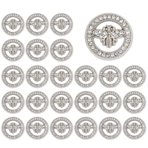 GOMAKERER 18 Stück 3 Farben Legierungs-Strassknöpfe 18mm, Runde Kleidung Annähen Knöpfe Mit Kristallverzierungen Häkel- Und Strickzubehör Für Dekoration Und Heimwerken