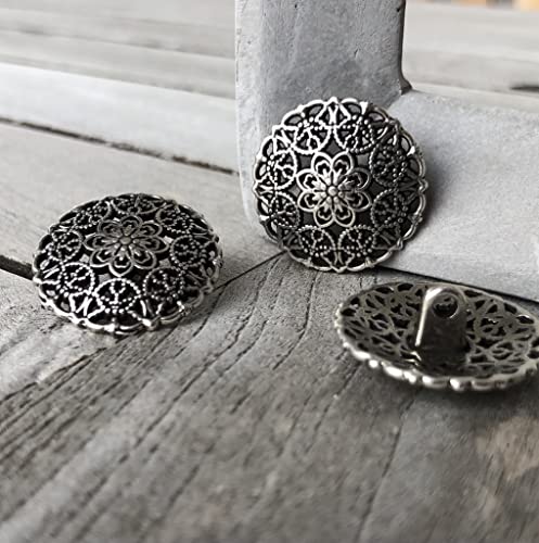 Silber Knöpfe aus Metall geschwärzt, wunderschönes Muster Made in Germany 20mm oder 25mm (6 Stück) (25mm)