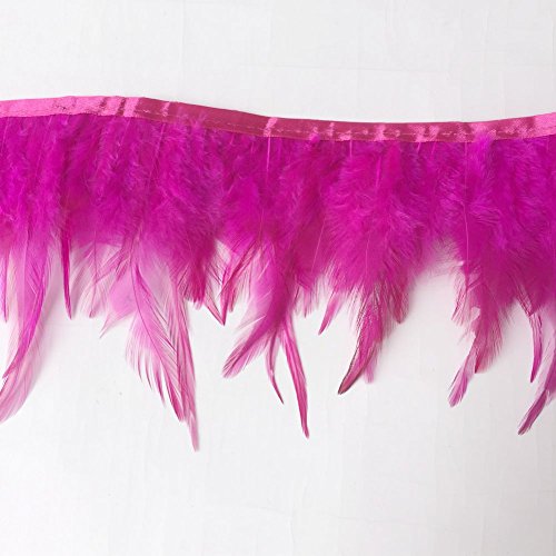 Sowder Natürlicher Hahn-Federrand, Fransen, 10–15 cm breit, Kleid, DIY-Dekoration 2 yards(Fuchsia)