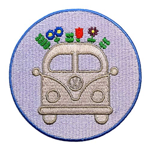 Urbanski Patch Bus Bully mit Blumen zum Aufbügeln 8 x 8 cm | Aufnäher Applikation Bügelbild