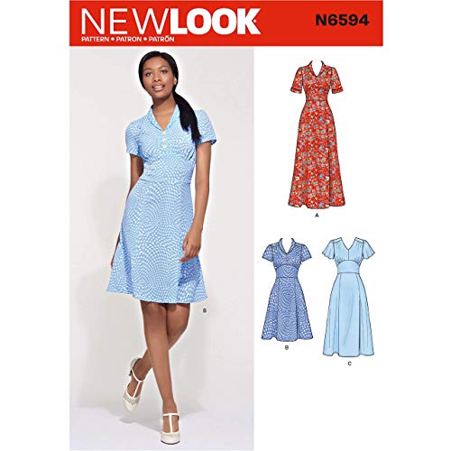 NewLook New Look Schnittmuster N6594 Damenkleid in drei Längen, Papier, Weiß, verschiedene