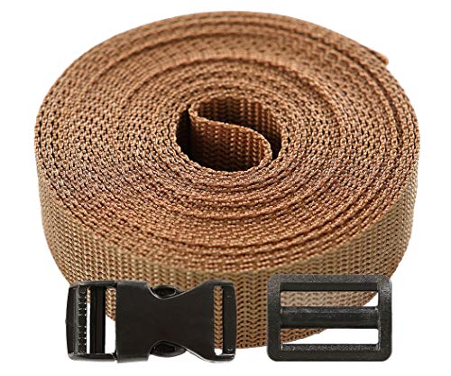 Roban Fashion Gurtband Polypropylen 5m mit Schnallen Klickverschluss/Klippverschluss x5 und x10 Leiterschnallen 25mm,Hellbraun