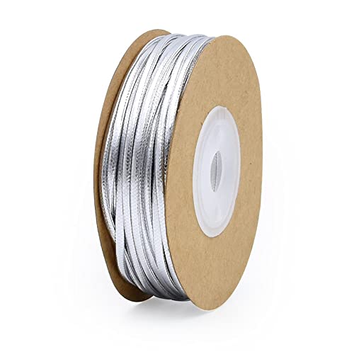 15 Meter Satinband Geschenkband Geschenkband Schleifenband Hochzeit Dekoband für Geschenk, Basteln, Nähprojekte, Haarschleifen, Hochzeits Dekoration,2mm,Silber