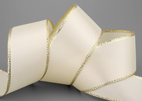 50 m x 40 mm Taftband mit Goldkante CREME GOLD ohne Draht Taft Dekoband Schleifenband Weihnachten Geschenkband Dekorieren Winter Lurex Glanz Stoffband Metallic