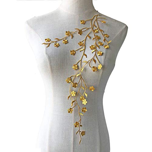 Bene Omnia Spitzenapplikation mit Blättern, florale Ranken, Spitzenapplikationen, Stickerei, Nähen, für Bastelprojekte, 45 cm (gelb)
