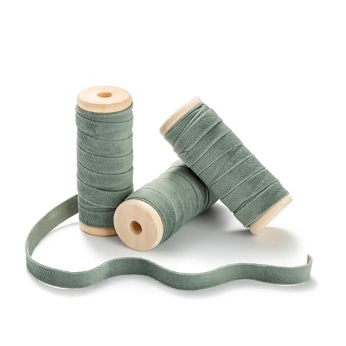 CHUQING Samtband 13,7m x 1cm Hellgrün Samt Dekoband Schleifenband Schmuckband Geschenkband,3 Rollen,Salbeigrün