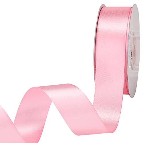 IHKFILAN Satinband, in Rosenrosa(25 mm x 22.86 m), matt glänzendes Geschenkband, edles Schleifenband zum Dekorieren & Basteln, zum Einpacken besonderer Geschenke, für Hochzeiten, Taufen, uvm