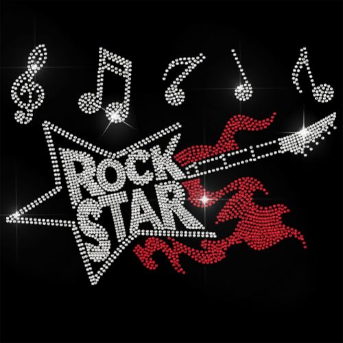 GOMAKERER 1 Stück Strasssteine Zum Aufbügeln, Hotfix Aufnäher Mit Gitarre Noten Zum Aufbügeln Transferaufkleber Kristall Wärmeübertragung Reparaturdekoration Für Kleidung Jacken Jeans