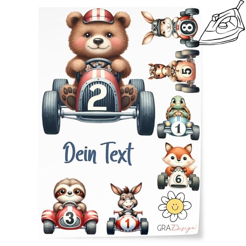 GRAZDesign Bügelbilder Set Autos für Textilien DIN A4 zum selbst aufbügeln für Kinder mit Namen personalisiert