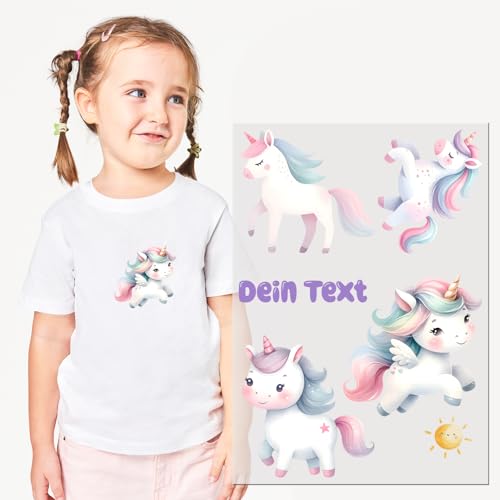 GRAZDesign Bügelbilder Set Mädchen Einhörner für Textilien DIN A4 zum selbst aufbügeln mit Namen personalisiert