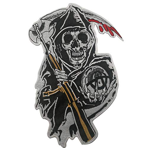 ODSP Aufnäher, kompatibel mit Sons of Anarchy Sensenmann, Motorrad, Biker, groß, zum Aufnähen, für Kleidung, Westen, Jacken, Rucksäcke, 32 x 21 cm
