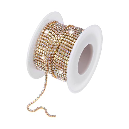 M METERXITY Strassstein-Nahkette, 2 mm 10 Yards Einreihige Verzierungskralle Kette, Kristallkralle Cup Kette Rolle für Näharbeiten/DIY-Dekoration/Schmuckherstellung [Gold AB]